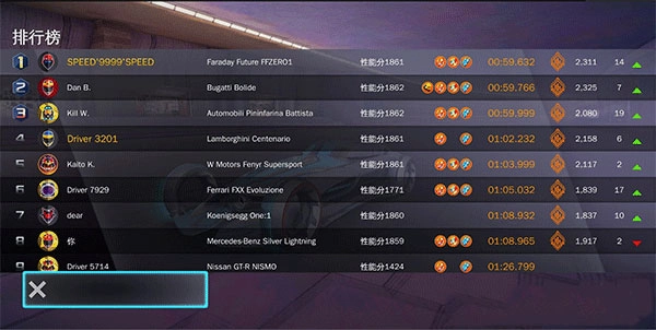 2、晋级到冠军联赛后尽可能使用车辆性能分较高的车去参加比赛,车辆的加速性能也尽可能要快。