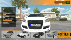1、在本站下载并安装该游戏的手机最新版本,打开进入后,能看到右上角默认显示9位数的现金。你可用这些钱买下下方所有型号的车辆,之后点击“CONTINUE”。