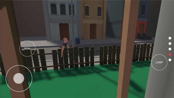 1、打开小老弟之坡道传奇游戏,进入游戏界面,玩家可以通过左下方的【圆形】按钮和【RUN】按钮控制角色移动和奔跑,点击【JUMP】按钮跳跃和【拳头】图标进行攻击,