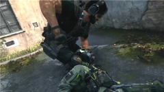 方式一:我们先绕到趴下的敌人后方,一拳砸到他的背上,然后勒住脖子,配合左手旋转,直接斩杀。