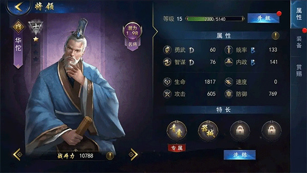 在《锦绣江山》中,华佗有较好的内政属性,可以给士兵增加生命。