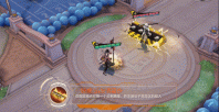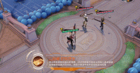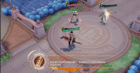 雨师向前扔出动物气球们,气球撞击到敌人带着五彩缤纷的轨迹向天上弹跳,绿色草叶形状的纹路标定出范围,展开一个有着蓝天白云绿色的小型游乐场,接着璀璨的流星猛烈落下,在地面上打出阵阵涟漪。