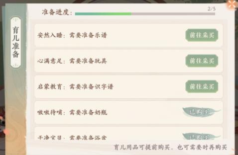 在照料婴儿前,宝爸宝妈们得做好育儿筹备,为宝宝们准备好玩具、澡盆、识字谱、奶瓶以及乐谱。