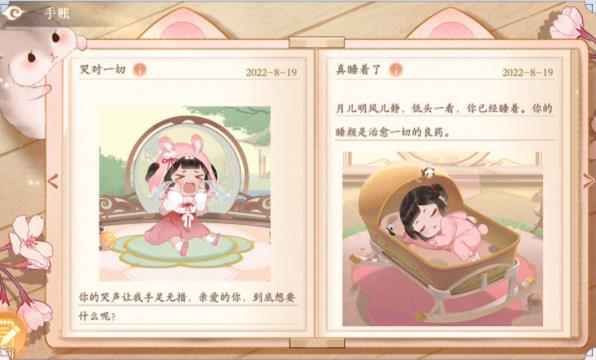 与宝宝的每一次互动,都将成为你们双方宝贵的回忆,这些都将一一记录在手账之中,点击右下方手账钮,便可重手账温这些温馨的瞬间~