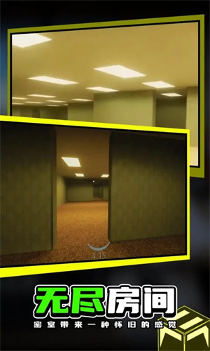 后室backrooms是一款主打怀旧恐怖风格的冒险解谜手游。玩家会置身于无尽的空房间之中,需要在众多房间里展开探索,进而找到出口。而且,除了寻找密室出口,玩家还得避开形形色色的恐怖生物,保障自身安全。