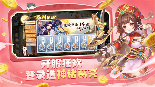 三国武将Q萌上阵,登录福利一键拉满!登录7天免费30抽,登录14天即可领取神诸葛亮,在线期间赠送大量招募令,2V2排位、乱斗、斗地主、爬塔模式应有尽有,段位越高,奖励越丰富,与好友随时随地组队开黑。