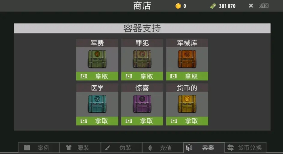 当然你也可以选择上班时间挂机播放广告,所有的箱子(我不知道它为什么会翻译为容器)都是无限的。