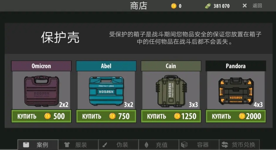 别小瞧“逃离暗影”这个小游戏,它是配备氪金系统的。毕竟制作团队规模不大,大家都得维持生计。但你完全不必担忧有玩家靠氪金获得神装,一枪打出999的伤害,更无需害怕自己会因氪金而倾家荡产。而且每次安全撤离后,都会奖励一枚通过充值获取的金币。