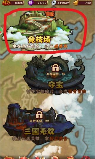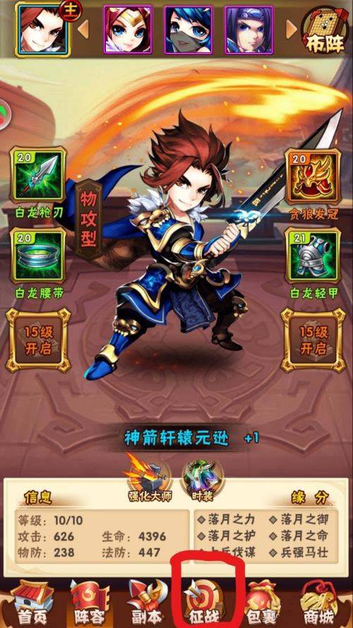 1、声望可以在竞技场中获得,并且可以用来兑换武将、觉醒丹等。登录游戏界面后点击“征战”按钮。