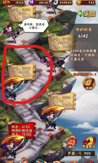 3、进入竞技场,便能看到其他玩家当下的排名情况。挑选一个战斗力低于自己的玩家发起挑战。(务必选择战斗力低于自身的,否则很难取胜。)