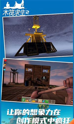 你可以从绑在一起的几块木板开始,就像在其他漂流生存中一样,但总有一个想象空间!抓住漂浮的残骸,处理它们,并建立一个巨大的筏子,以生存僵尸和鲨鱼。建造任何形式和大小的浮动堡垒,完全取决于你。