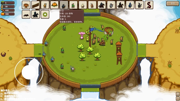 5、进入游戏后,玩家可在底部的建筑栏中选择不同类型的建筑,栏内还包含各种兵种。点击相应图标,便能了解生命值、招募价格及伤害等所有信息。