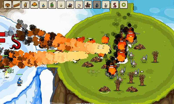 6、当玩家认为自身战力足够时,就能够操控所有作战单位,对临近的对手领地展开争夺。