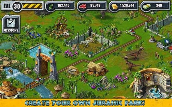 2. 资源与设施管理:玩家需合理管理公园资源,保证恐龙生活环境舒适,以吸引更多游客前来游览。