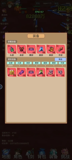 剩下的就听天由命吧(拼躲避),我打2000层至少打了50次,2500层起码打了100次。不用特意去堆躲避属性,前期闪避最多也就40。只要过了炎魔进阶获得下一层装备,之后刷图就轻松多了。努力刷到5000层,打了玄石用来强化神剑,这样应该会好打很多。