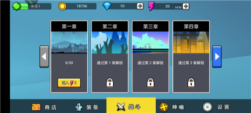 6、成功通关关卡后,能够解锁更多的章节与技能,同时可获得的装备数量也会增加。