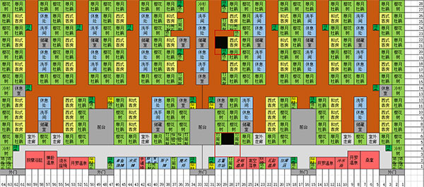 2、布局图上半部分的中间为“商业区”,每种设施仅用一个,以达成所有的契合度组合。即便没有契合度组合的设施,也安置于此。其两边是男女温泉区,在此放置了全部四种温泉,且每个温泉都具备除异性加成之外的六种温泉功效(比如男性温泉不具备花瓣之池和盐之池这两种增加女性契合度的功效)。