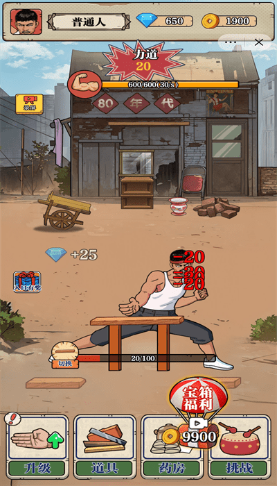 2. 仅需点击人物角色,便能完成各式各样的劈砖动作。