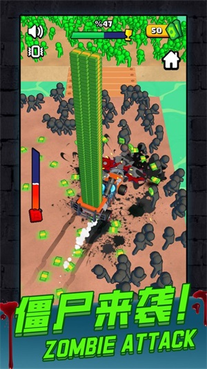 2、游戏画面极为简约,能为你带来别具一格的视觉体验。无论何时何地,你都能随时开启一局游戏,尽情享受其中乐趣,让所有僵尸都对你心生畏惧,成为当之无愧的最强胜利者。