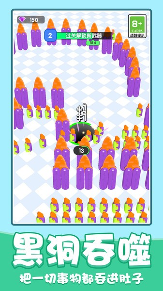 《黑洞进化》是一款充满趣味与挑战的游戏。在游戏里,你要操控黑洞,于广袤的地图中持续吞噬各式各样的萝卜刀,同时打败敌人来赚取金币,进而提升自身属性。该游戏制作精良,运用了3D建模技术,画面极为逼真。而且游戏操作简便,仅需滑动屏幕就能控制黑洞移动。