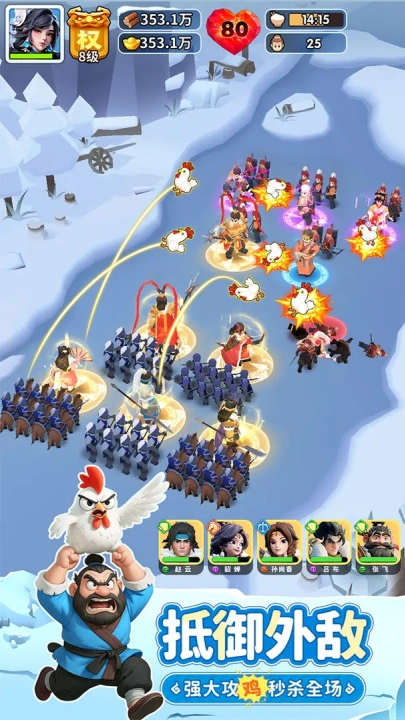 招募三国武将,诸葛亮、赵云、吕布皆听您调遣,搭配不同武将组合即可守卫城市。