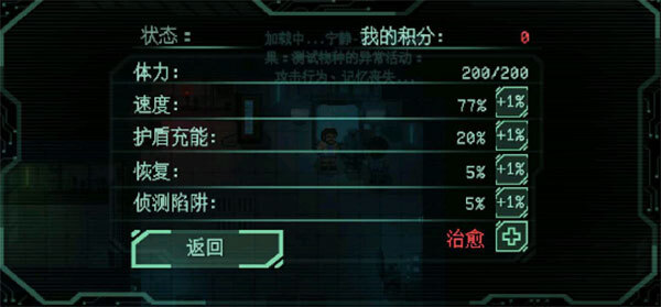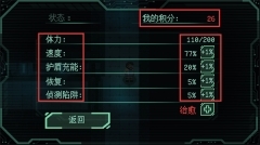 4. 角色强化:在状态界面里,玩家能够利用积分对【速度】【护盾充能】等属性开展升级操作,以此增强角色的能力,进而应对难度更高的挑战。