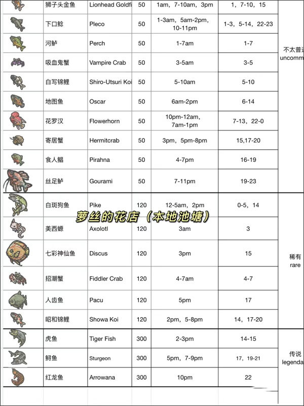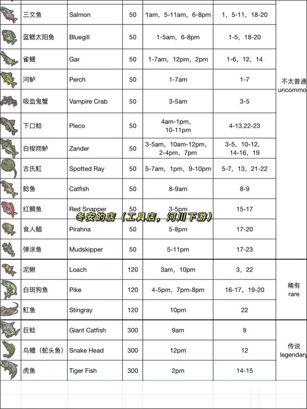 10、小镇公告板会有高价鱼种,需要在不同的时间和地点才能钓到(发到下一篇笔记了)。