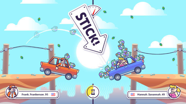 《疯狂的鸽子世界》是一款趣味对抗射击游戏,玩家需坐在行进的车上,车子会缓缓向前移动,抵达悬崖边后停下。之后玩家要利用绳子将鸽子弹射到对方的车子里,以此增加对方车子的重量,使其逐渐向悬崖方向滑动,最终坠入悬崖。