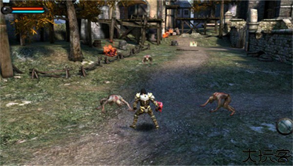 1、国王村(普通难度):纯新手教学关,木桶、罐子都能破坏,里面藏有金币,可先用来熟悉操作。遇敌时会触发临时结界,将你限制在战场内,需消灭所有敌人才能解锁离开。初期小怪强度低,主要用于体验砍杀手感与角色操控。游戏自带自动瞄准砍杀辅助功能,实用性尚可;但想优先击杀特定目标(如弓手、法师需快速近身)时,建议调整操作:不要连按攻击键,先朝目标方向突进再挥砍。 2、操作键位简洁:左侧为虚拟摇杆,右侧核心是砍杀键,周围分布三个按键——左下方两个对应武器附着技能(可从火、冰、电三系中选两个装配),上方按键为关键位移键:短按触发前冲翻滚,长按则是冲刺,冲刺距离由盔甲的“体能”属性决定。灵活运用位移键,对闪避敌人攻击、衔接特殊招式帮助很大。需注意:初始关卡键位不全,第二关才解锁完整功能;本人是一周目通关后重玩写攻略,因此当前键位齐全,盔甲也换了套外观更精致的。