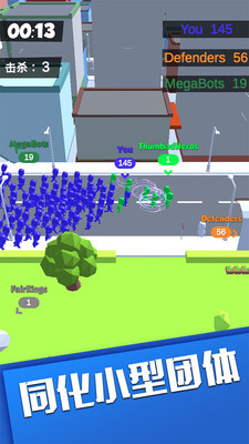 《麦比大作战》是一款多人在线对决的io类游戏,玩家将操控自己的军团,不断收集小弟,同化小型团体,加强自己的团体力量,争夺即时正义,最终称霸城市,快来体验一番吧!