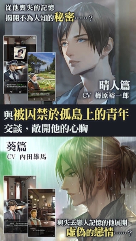 《被囚禁的掌心》是卡普空(CAPCOM)开发的一款女性向恋爱模拟手游。玩家扮演一名辅导员,通过监狱隔离玻璃与失去记忆的俊美青年“晴人”或“葵”进行互动。游戏核心在于通过实时对话、监视系统、赠送礼物及触碰玻璃等互动,逐步引导他们恢复记忆、建立情感羁绊。其独特的“隔离式”恋爱体验、细腻的心理描写与高水准的角色塑造,营造出沉浸感极强的浪漫故事。