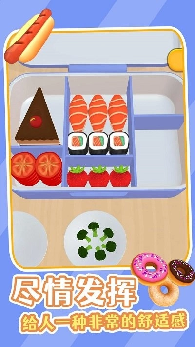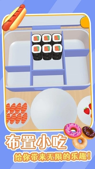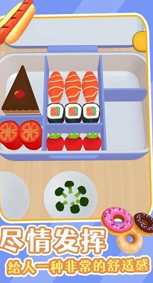 美味的便当是一款美食制作经营类解压游戏,玩家能在游戏里自由创作各类便当,解锁多样美食并按规律摆放进餐盒,持续升级以提升经营收益,为玩家带来更多解压体验。