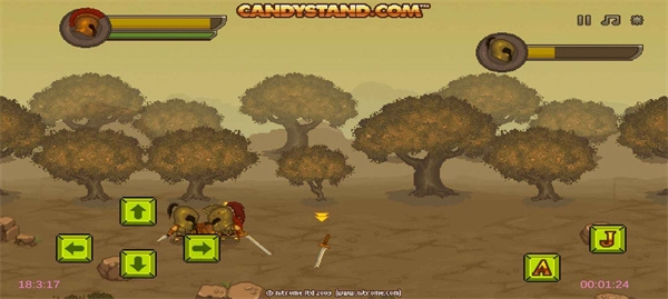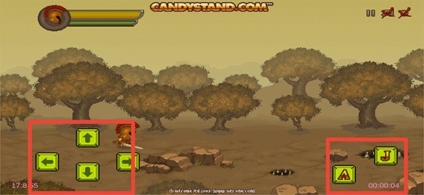 2、进入游戏后,左侧的上下左右按钮用于操控角色移动,右侧的A键对应攻击功能,J键则是跳跃功能。