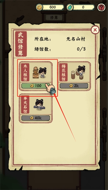 3、选100金币的木人桩馆,钱够直接点确认建造。