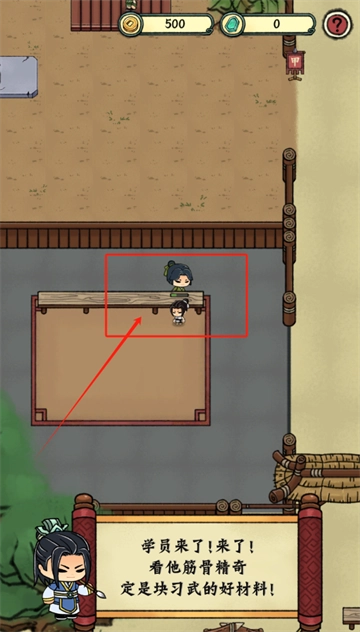 4、新学员来了,点蓝衣服师傅对话收他入门学武。