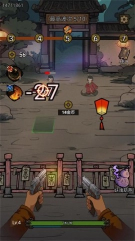 3、用手枪将扑来的怨灵击退,通过狙击枪远程干掉屋顶的隐形尸鬼,战斗体验无比刺激。