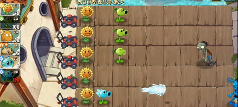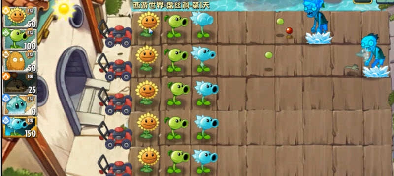 3、注意收集空中飘落的阳光,这是召唤植物的关键资源,合理积攒才能应对后续大批僵尸进攻。