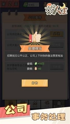 《交换人生》是一款主打单人体验的模拟经营游戏。在游戏里,你能与他人进行灵魂互换——比如和富二代交换身份,开启一段优渥的生活。当你以全新身份醒来后,便可以自由规划各项财务事务:创办属于自己的公司,开展各类投资项目……毕竟,此刻的你拥有着用之不尽的财富。