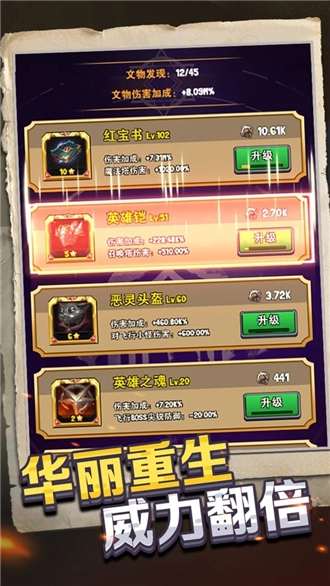 1、创新性的轮回玩法,让游戏变得更加刺激,双倍的力量和免费装备大大提高了游戏的乐趣。