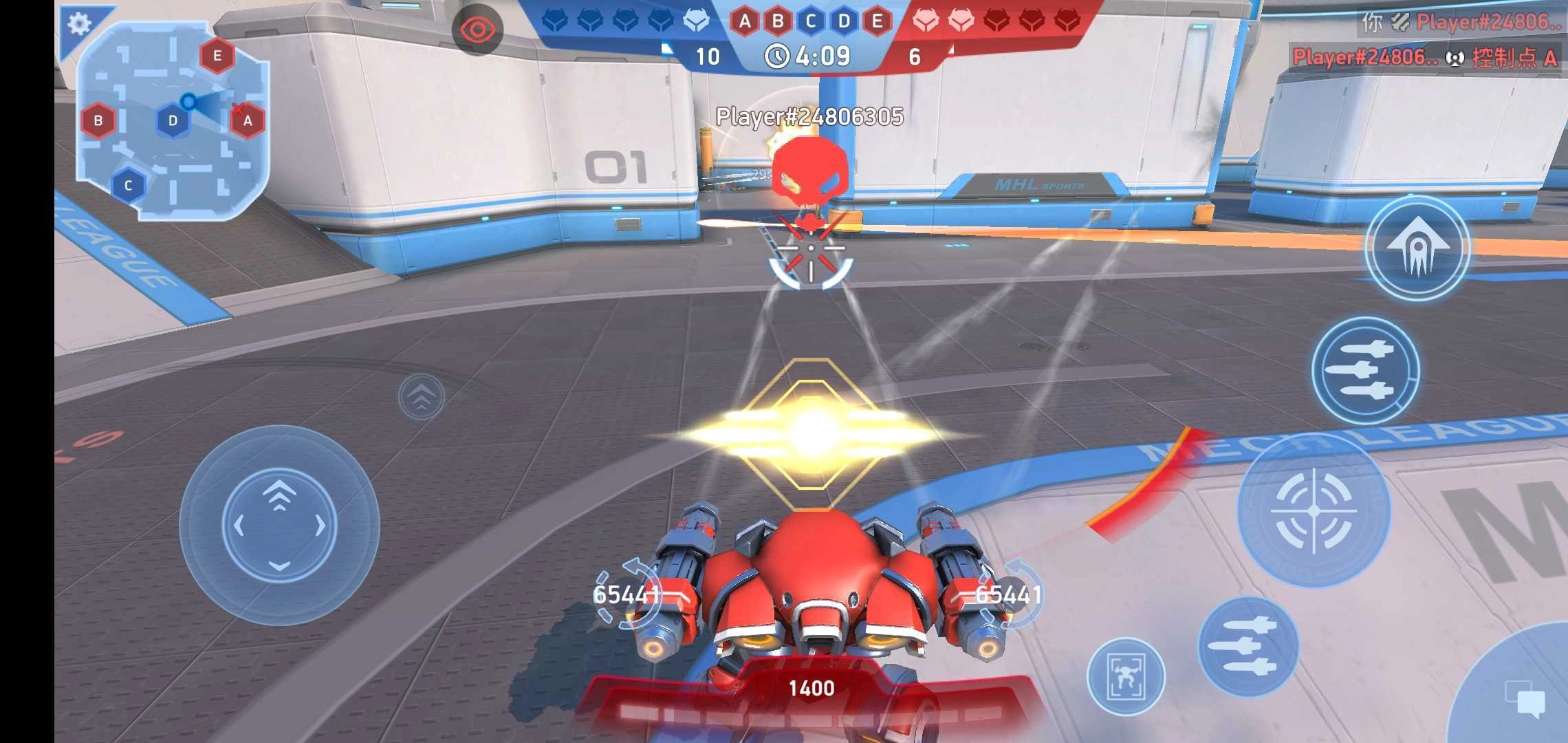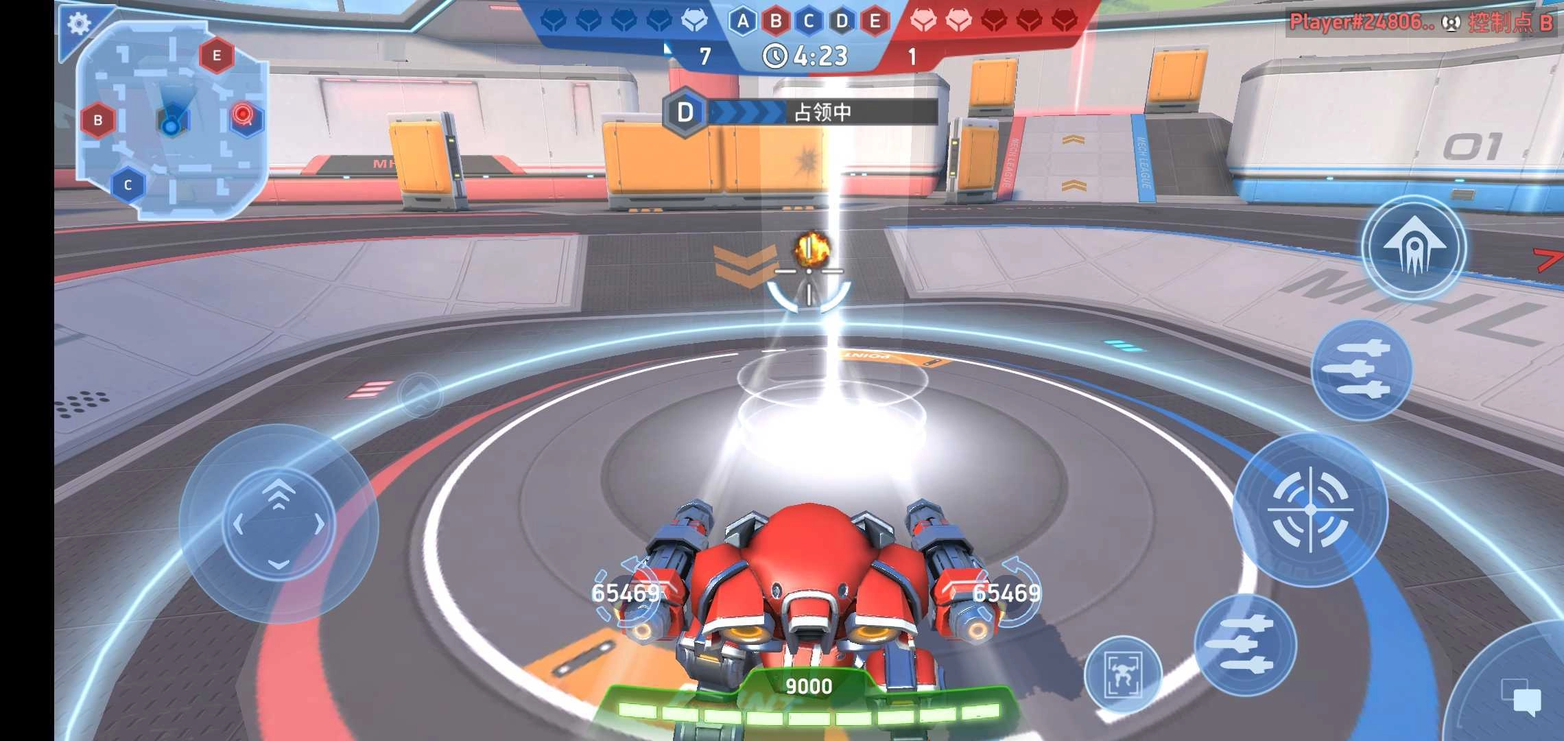1、玩家进入该模式后,可借助左侧轮盘操控机甲移动,通过右侧按键实现机甲射击、技能释放等操作。