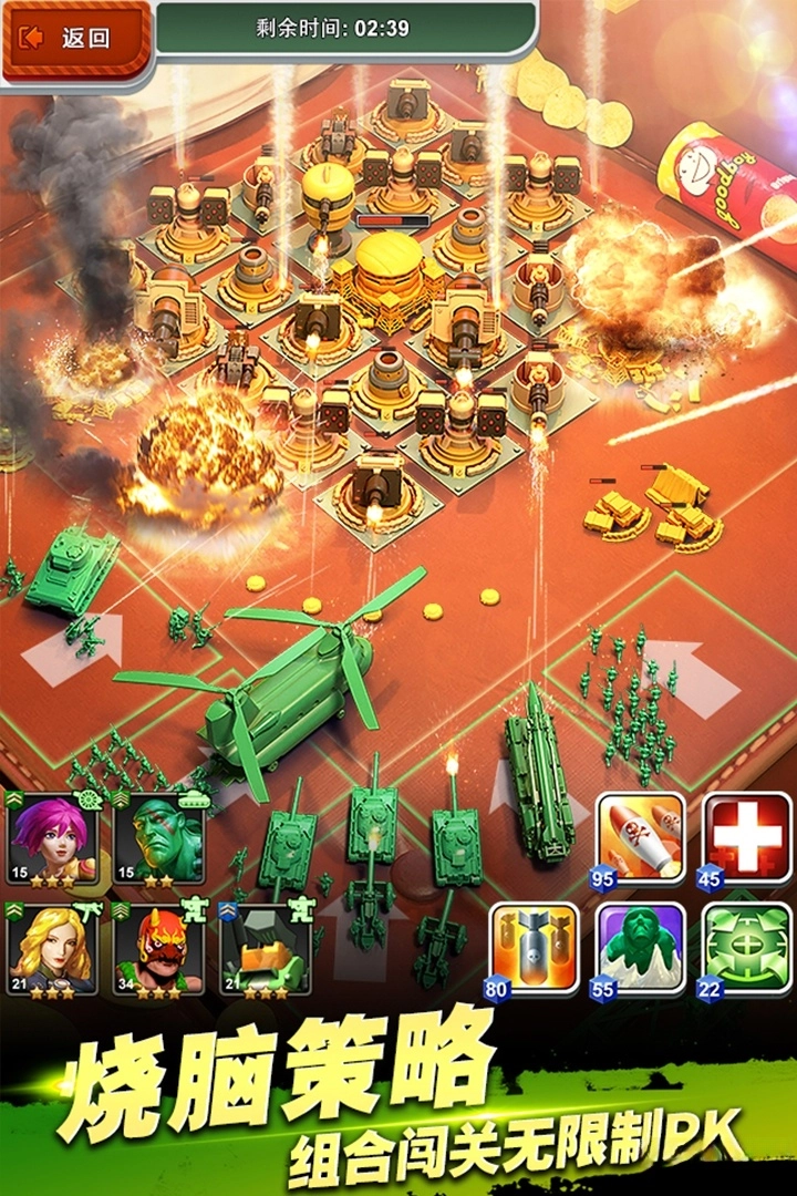 《兵人大战》围绕多元化战争策略玩法打造核心体验,玩家将化身为玩具指挥官,率领麾下三军投身全球同服的激烈战斗。不仅如此,实时开启的世界联盟混战、丰富的玩具兵科技系统、海量军官兵种的进阶养成等趣味玩法都汇聚于此,等待你的探索与体验,快来加入绿色兵团,开启这场充满欢乐的玩具大乱斗冒险吧!