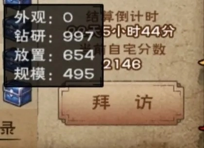 家宅分数分:外观分,放置分,规模分,钻研分四部分组成