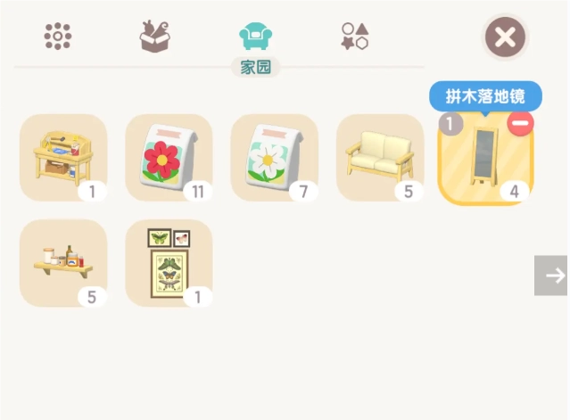 3、再玩家需要集齐所有的材料后,选择制作拼木落地镜。