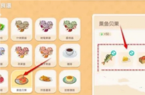 4、完成烹饪后,点击烹饪台上的手套图标即可获得熏鱼贝果。