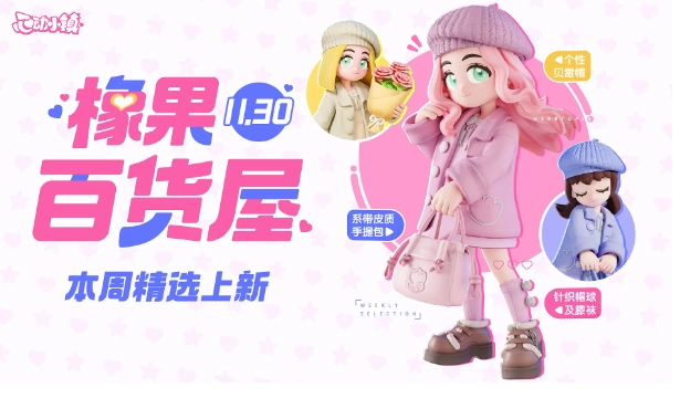 售卖时间为11月30日6:00至12月21日5:59,每周六上新,共计3期内容,3期分别为粉色、米色、蓝色的同一主题服饰。