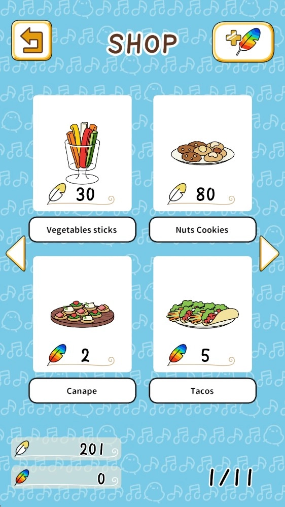 2、比如点击第一个按钮后,小鸟便会带领其他鸟儿一同进行演奏。