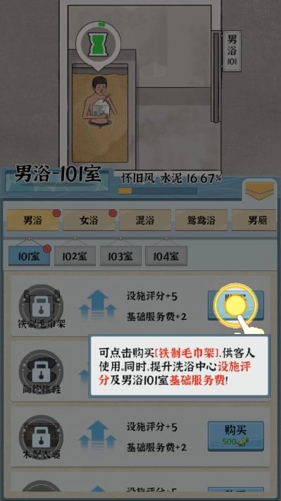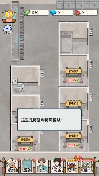 1、浴场经营玩法有趣,在游戏中建立自己的浴场