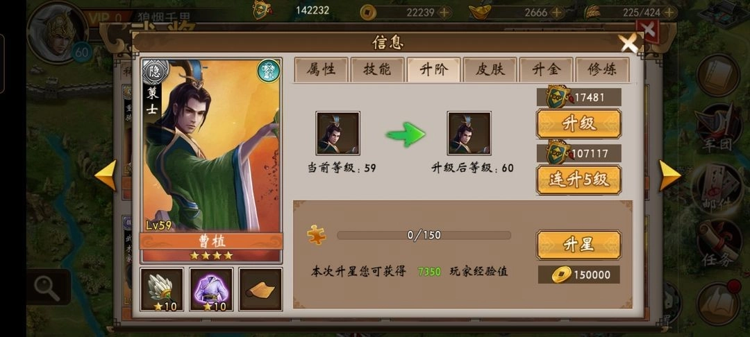 根据作者经验,在30以下的关卡,武将每升一级都能让关卡简单多。30级后,等级优势不明显,只有升星/升金/修炼增加的属性成长值,才能让属性质变,从而减轻关卡难度