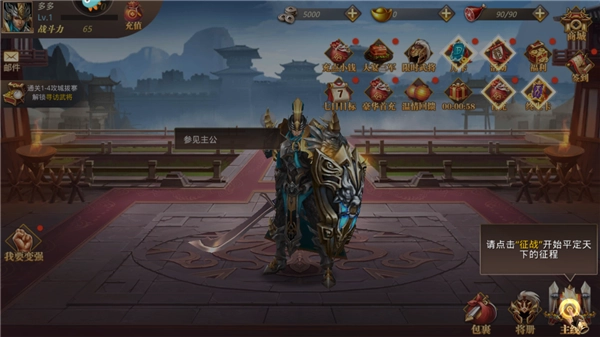 4、进入游戏之后点击“征战”开始平定天下的征程。