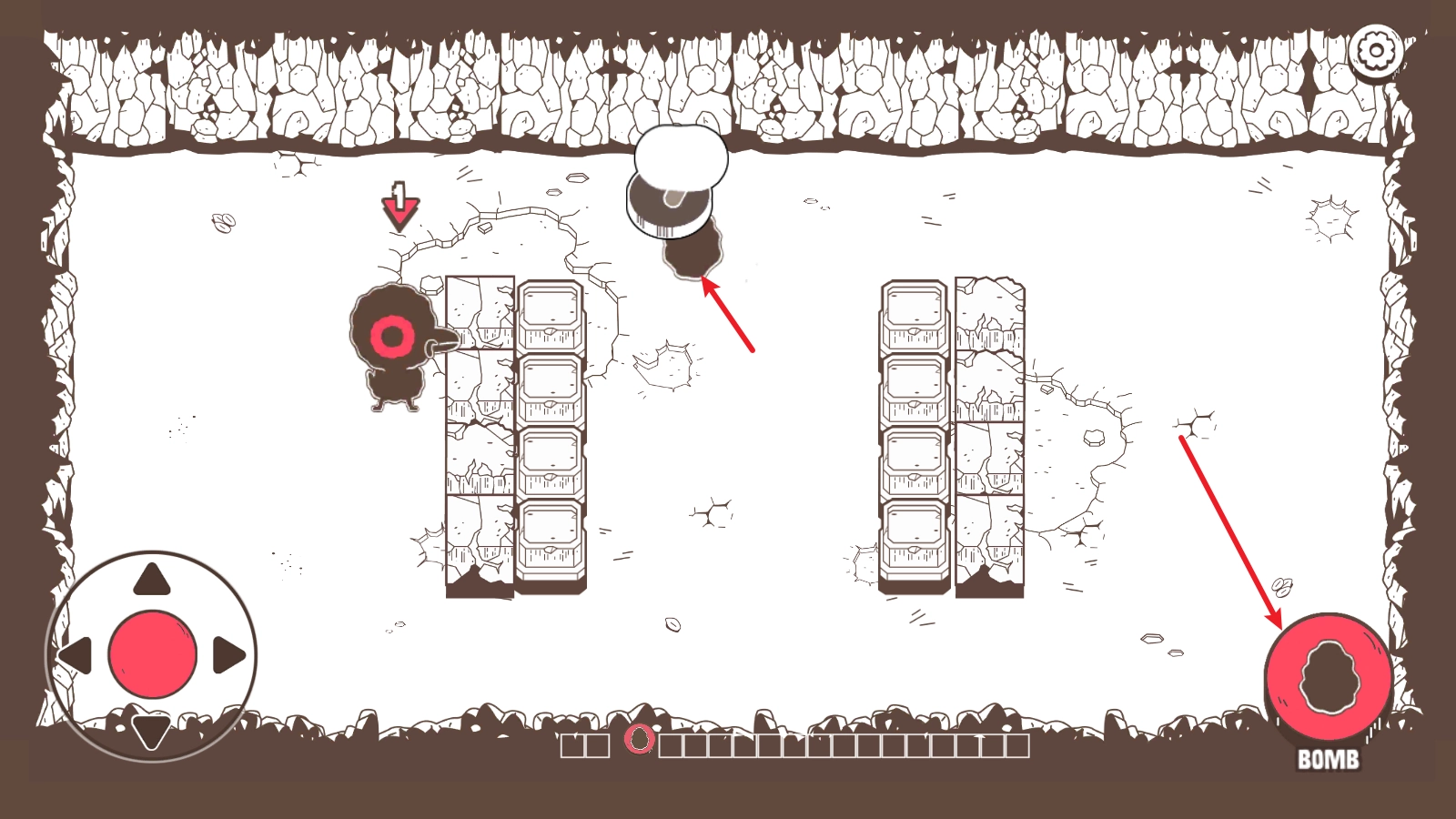 4、我们移动到合适的位置后,点击右侧的按钮,就能放置炸弹了。